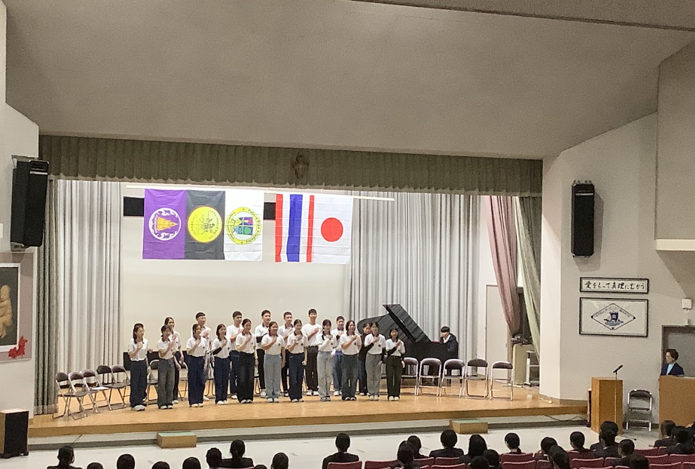 11月30日(日)から海星にはタイのティーラタダ ピサヌローク スクールから生徒をお迎えしています。初日は全校生徒で歓迎式典を行いました。今週は1週間、各クラスに2名ずつタイの生徒が入り、一緒に学校生活を送ります。