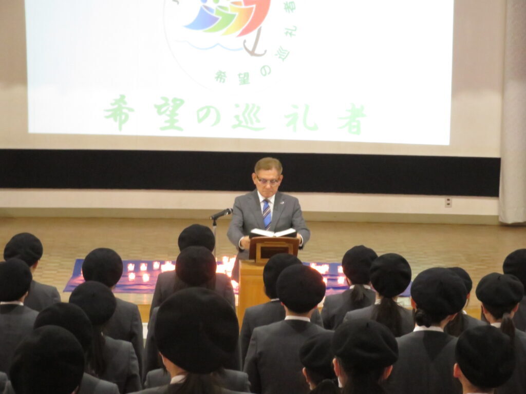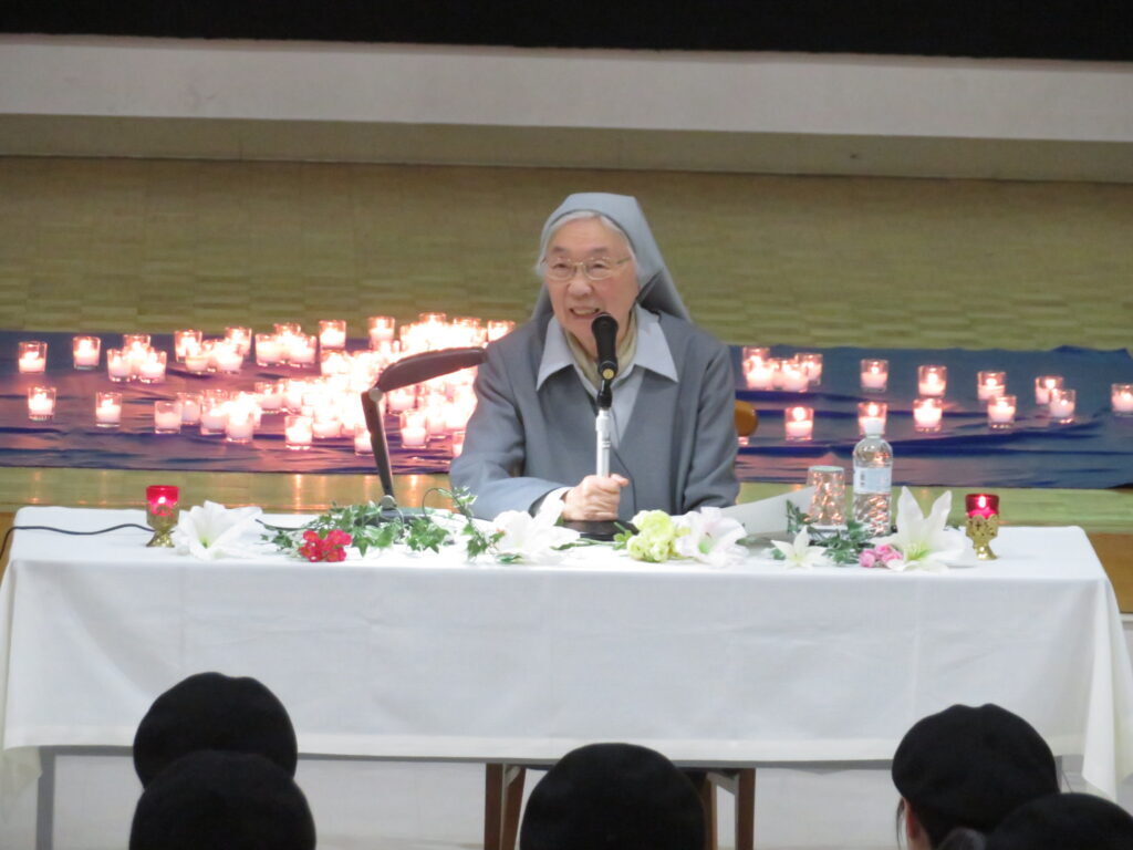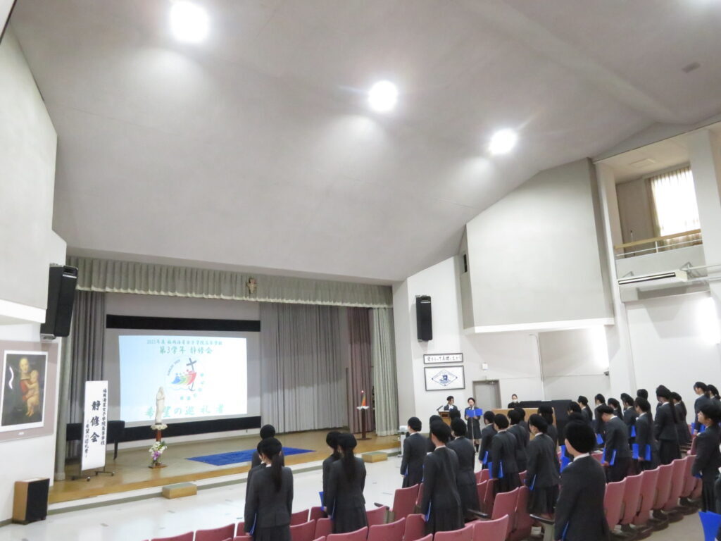 シスター入江をお迎えし、卒業を控えた3年生が「希望の巡礼者」をテーマに静修会を行いました。