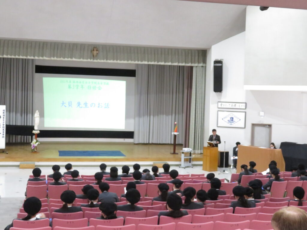 「3年間の自分と向き合う時間となりました。シスターや先生方のお話を通して自分の人生について考える機会となりました。自分の弱さを認め、自分を愛してくれた人たちに愛で返せるようになりたいです。海星で学ぶことができて本当に良かったです。」(ある生徒の感想より)