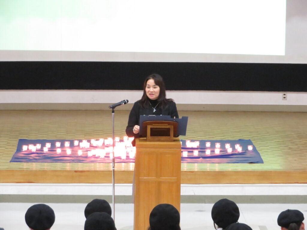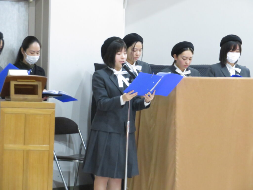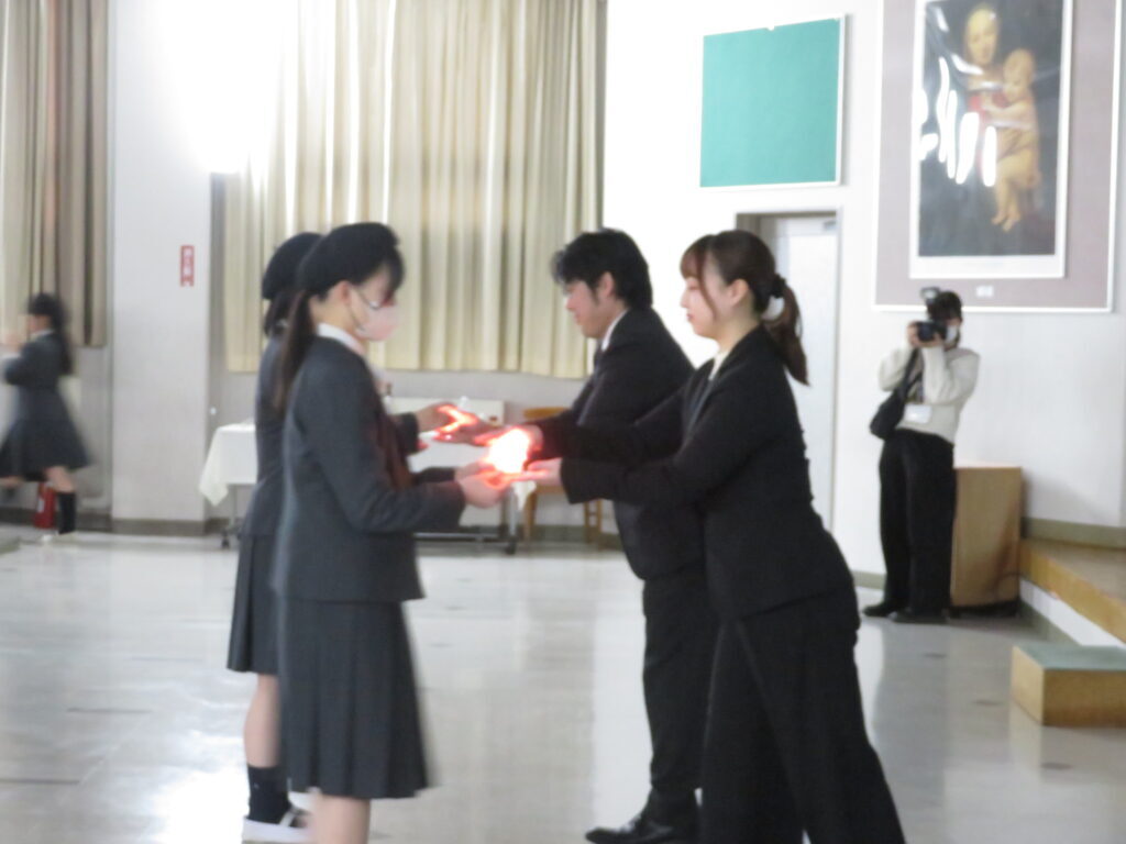 この3年間、よりよく生きていく上で大切なことを学んできた3年生。卒業を前に、海星での日々を振り返る中で、多くの人々の支えによって今の自分があることに感謝しました。またこれから海星を巣立ち、一人ひとりが新しい生活を送る中でも、いつも希望を持ち、そして周りの人々にも希望をもたらすことのできる存在となれるよう願い求めました。