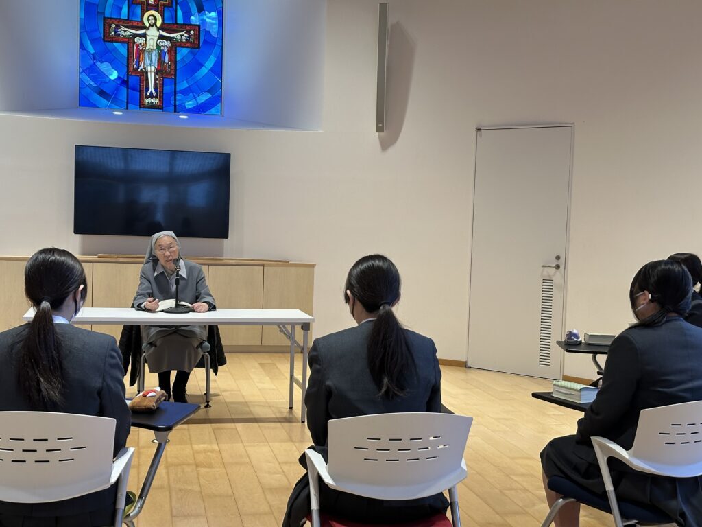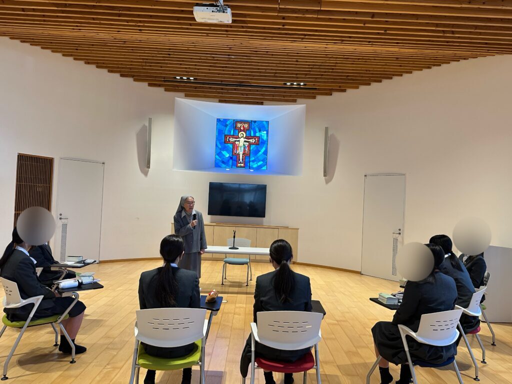 ブライトコースの生徒たちは講堂朝礼の後、シスター入江よりお話をいただきました。ブライトコースだけの特別なお恵みです。