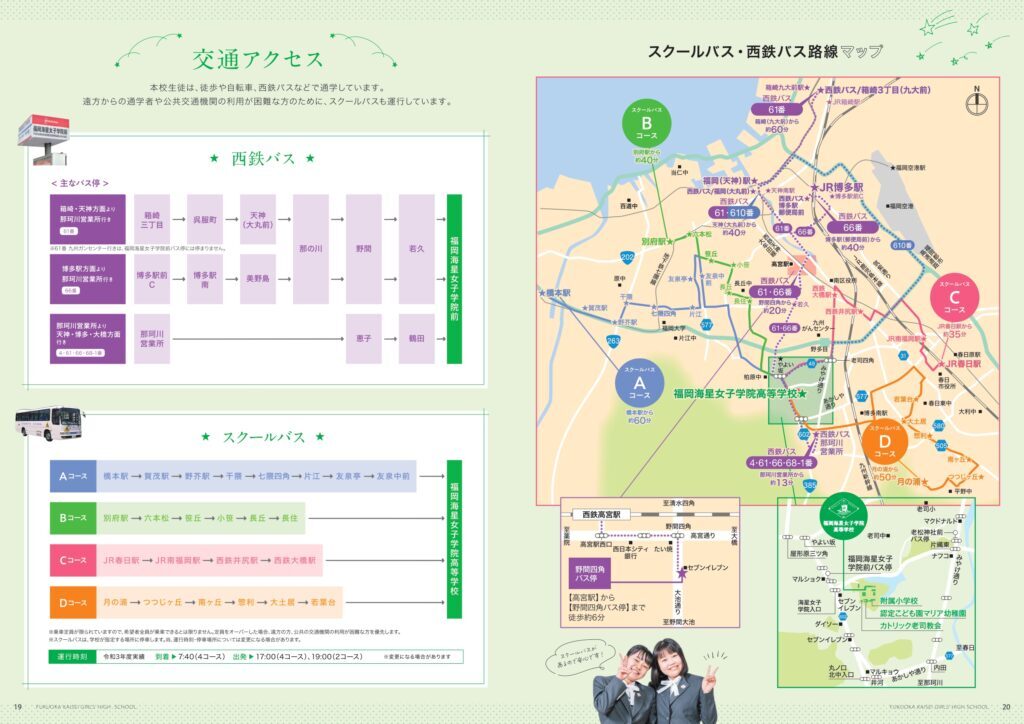 ※乗車定員が限られていますので、希望者全員が乗車できるとは限りません。 定員をオーバーした場合、遠方の方、公共の交通機関の利用が困難な方を優先します。※スクールバスは、学校が指定する場所に停車します。 尚、運行時刻・停車場所については変更になる場合があります。
