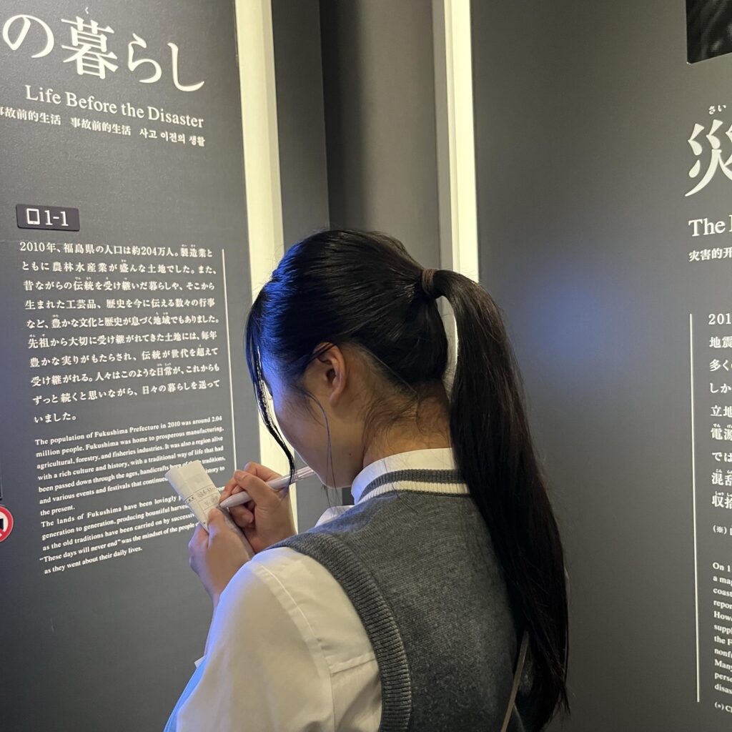 専科「グローバルリーダーシップ」の授業では、英語によるSDGs探究を行っています。チームで世界の諸問題についてリサーチし、その解決に向けてのプロジェクトに取り組みます。3年次には、福島県ホープツーリズムに参加し、東日本大震災の復興事業に関するテーマを研究します。また、1・2年次に上級学校バス見学会に参加し、各々の目指す専門分野を発見します。