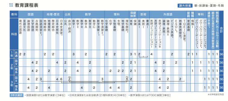 ビジネス英語、ESOL、時事英語探究、TOEIC演習、Breaking News Timeなどの授業がすべてネイティブスピーカーの先生によって行われます。英検やGTEC等の外部英語検定試験を利用し、大学入試でのアドバンテージを獲得します。