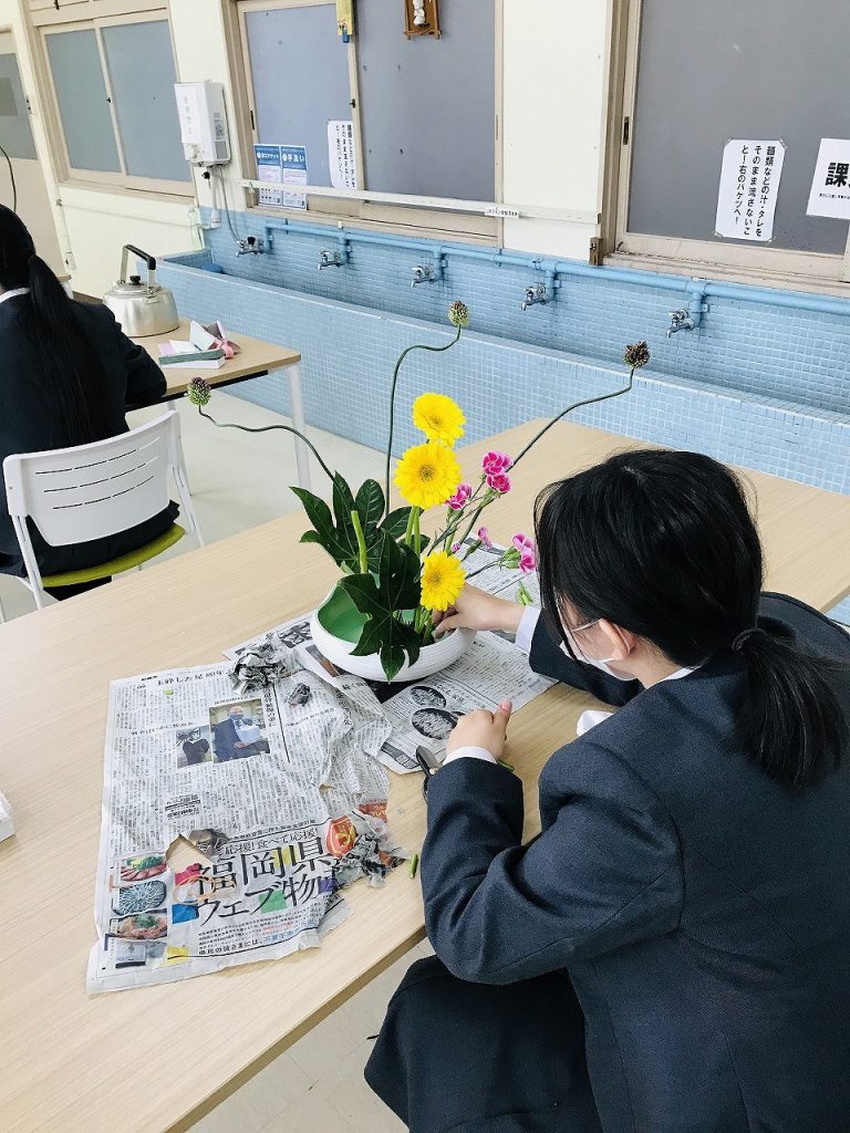 1年生、国際教養コースには、「文化理解」という授業があります。具体的には、茶道と華道について学びます。海外に留学した時に、日本の文化を正しく外国の人に伝えることができるようになることが目的です。大変素晴らしい作品を飾っていただきました、ありがとうございました。
