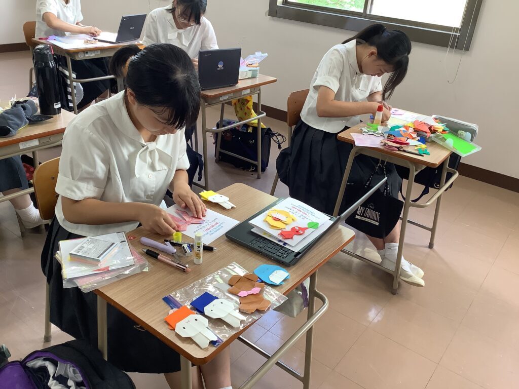 子ども達を海星祭に招待するために、子ども達が好きそうなものを折り紙で折り、招待状を作ります。