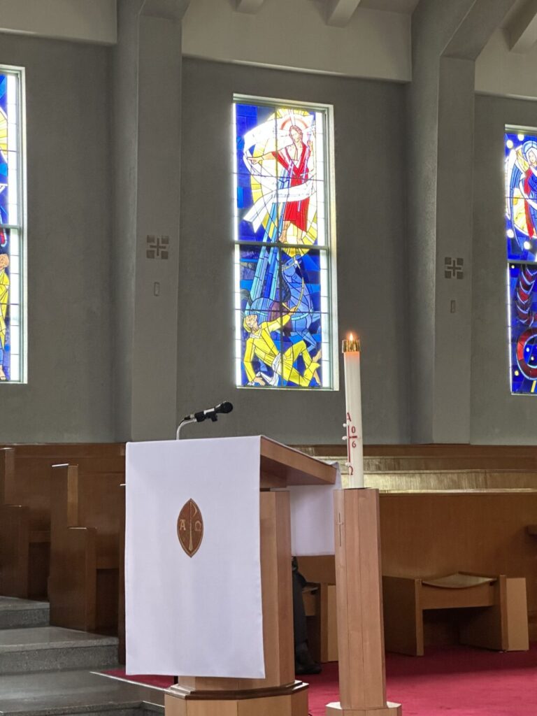 大聖堂で神父様にお話をいただき、神父様の歌われる祈りの歌に心を打たれながら、キリストの光であるろうそくの火を見つめ、祈りの心地よさを味わいました。