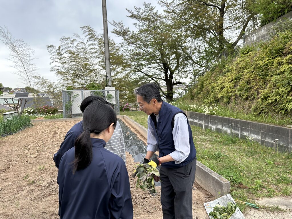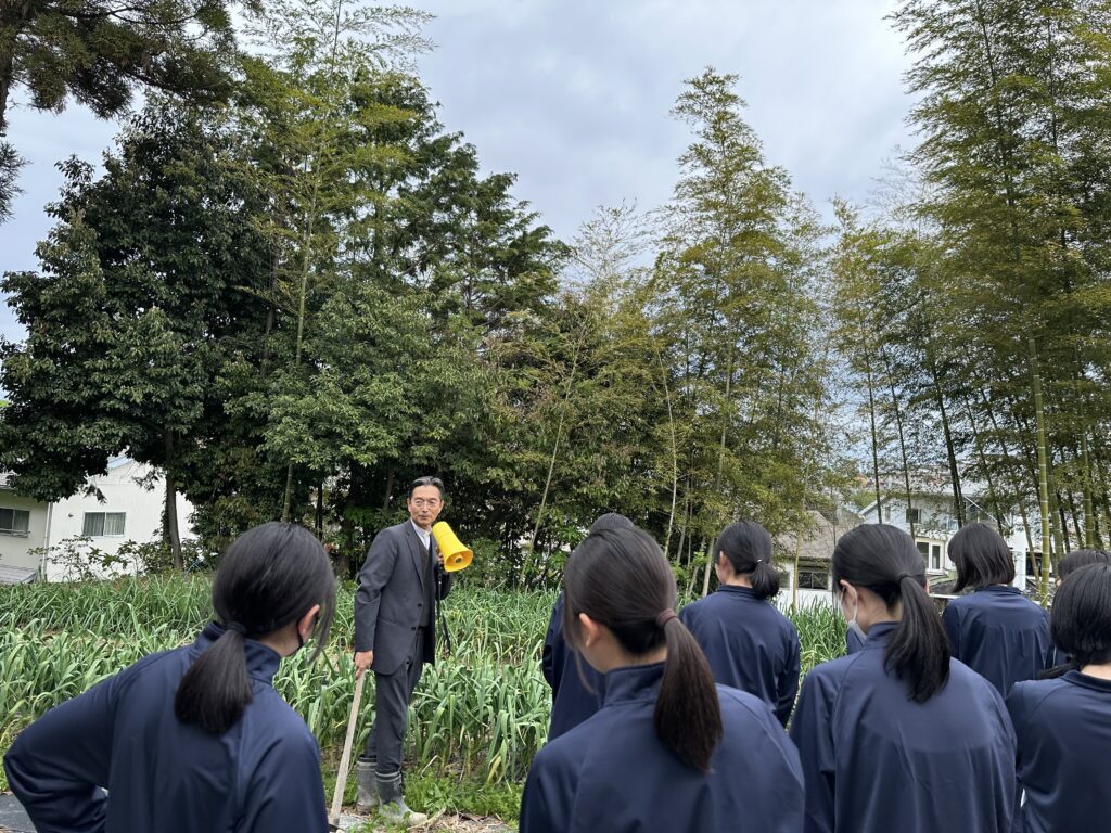 畑に到着です。採れたてのにんにくの芽の匂いを嗅ぎ、畑のレクチャーを受けました。皆の畑に何を植えるかを考えました。さつまいもを植えることにしました。