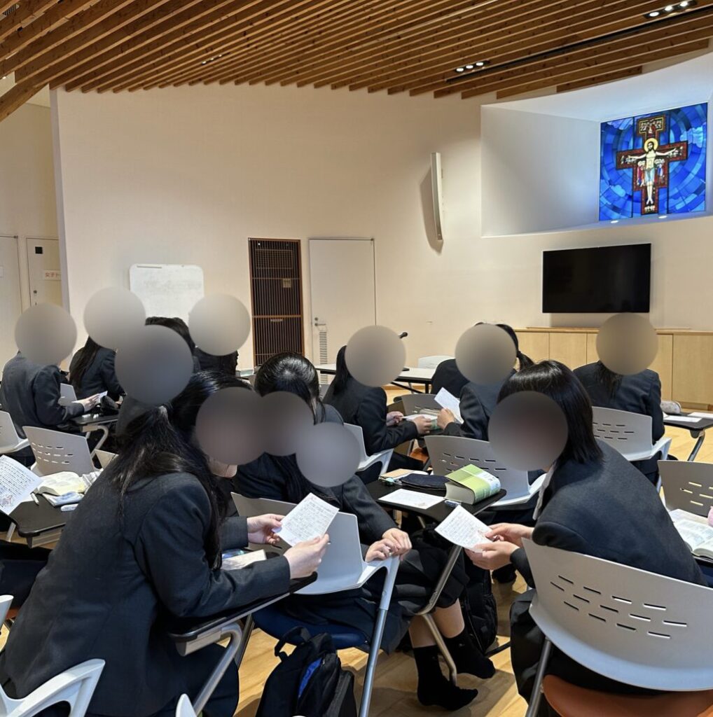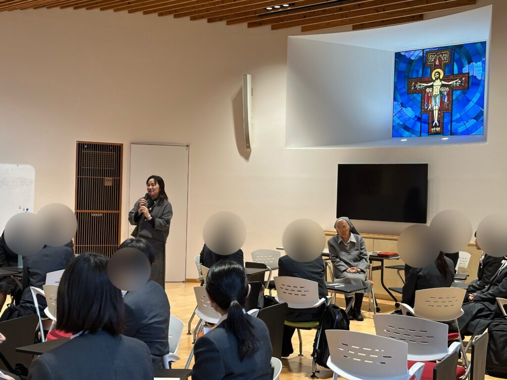 ご講話の後は、シスターのお話を一人ひとり振り返り、それぞれの気づきを近くの人と分かち合いました。