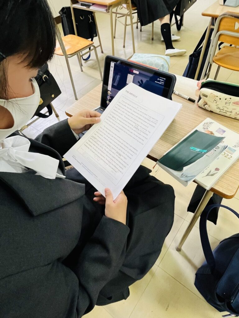 英語の課外授業であるBreaking News Timeはグローバル特進コースのスペシャルレッスンです。レッスンを通して英語新聞の読み方や世界で起きていること、時事問題について英語で学ぶます。記事を読み、初めて出会う言葉の意味を知り、発音を一緒に確認していくことでスムーズに英文を読んだり理解したりすることができます。沢山の言葉を学んでいくというプロセスはとても楽しいものです。将来、このレッスンを通して学んだ言葉やリーディングスキルを活かせることを楽しみにしています!
