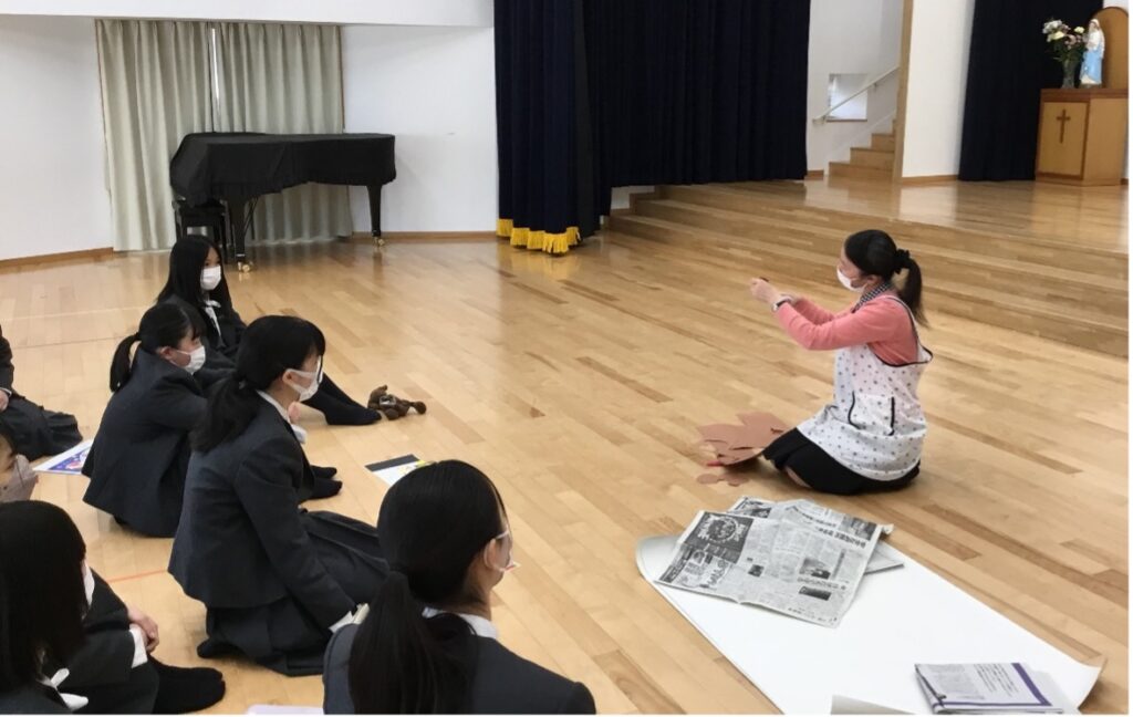 2年こども教育進学コース こども教育総合 2年生のこども教育総合の授業では、壁面の製作を行っています。幼稚園の教頭先生から、画用紙で動物を作るときのコツを教えていただいたり、アドバイスをいただいたりしながら、製作を進めていきます。 製作した作品は、マリア幼稚園で飾ってもらうため、園児が喜ぶ顔を想像しながら、丁寧に製作しています。完成するのが待ち遠しいですね。 2022.04.27 前の記事へ 一覧 次の記事へ