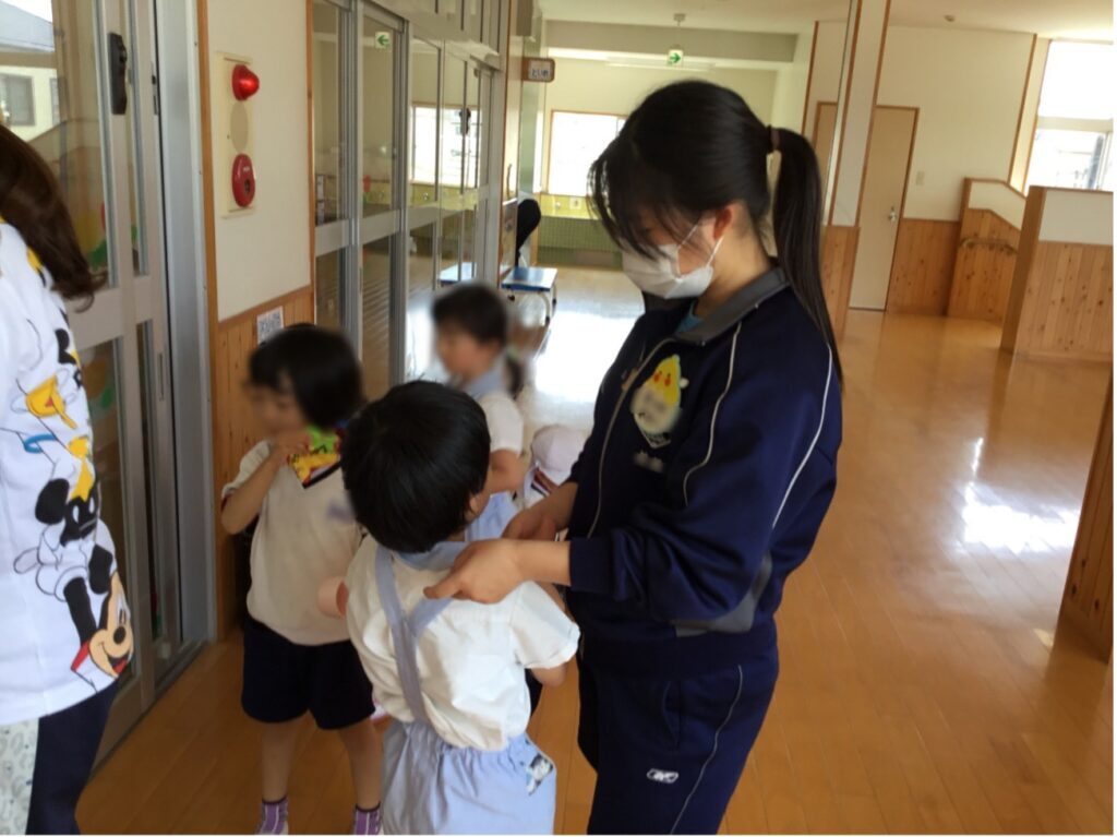 こども教育進学コースの3年生が、自分たちの母園を中心とした外部の幼稚園へ実習に行きました。