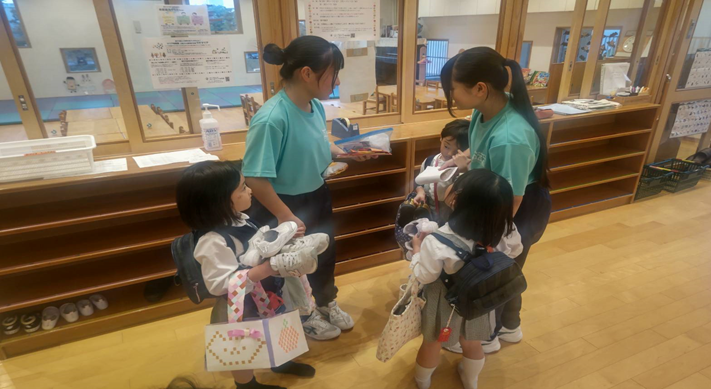 子どもたちの前で手遊びや絵本の読み聞かせをさせていただいたり、帰りの準備のお手伝いをしたり、子どもたちの喜ぶ顔を見てとても嬉しい気持ちになりました。