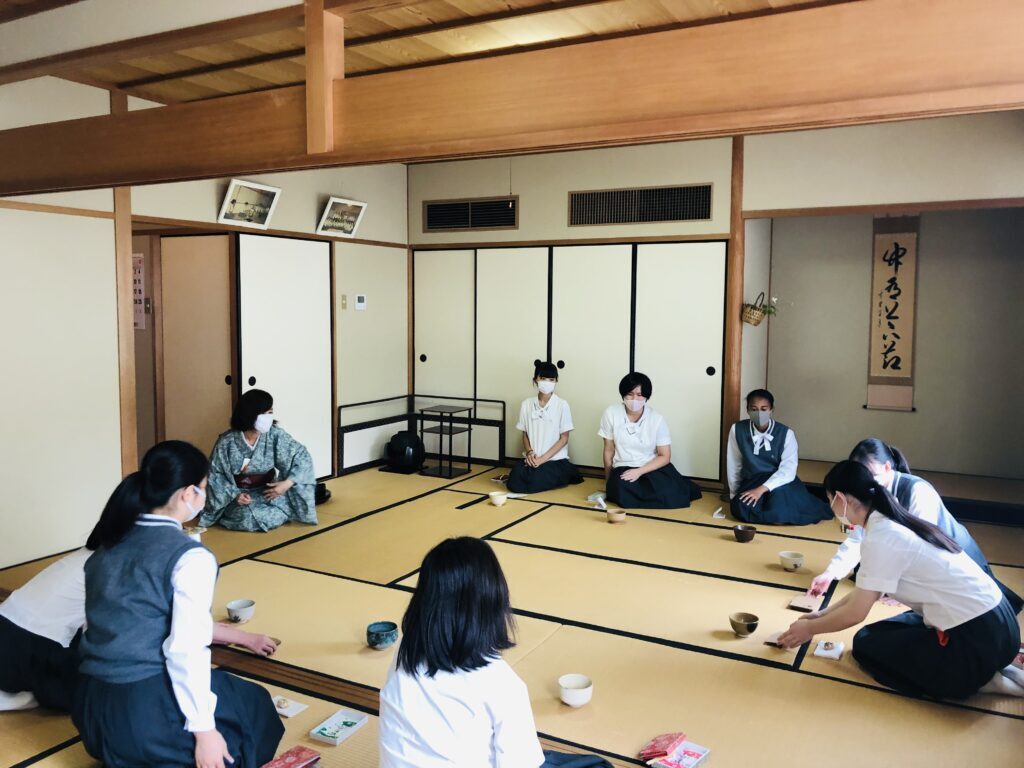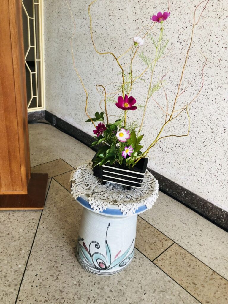 今週の茶道のレッスンは、帛紗捌きとお茶の点て方などを学びました。華道はコスモスなどの秋の花を生けました。