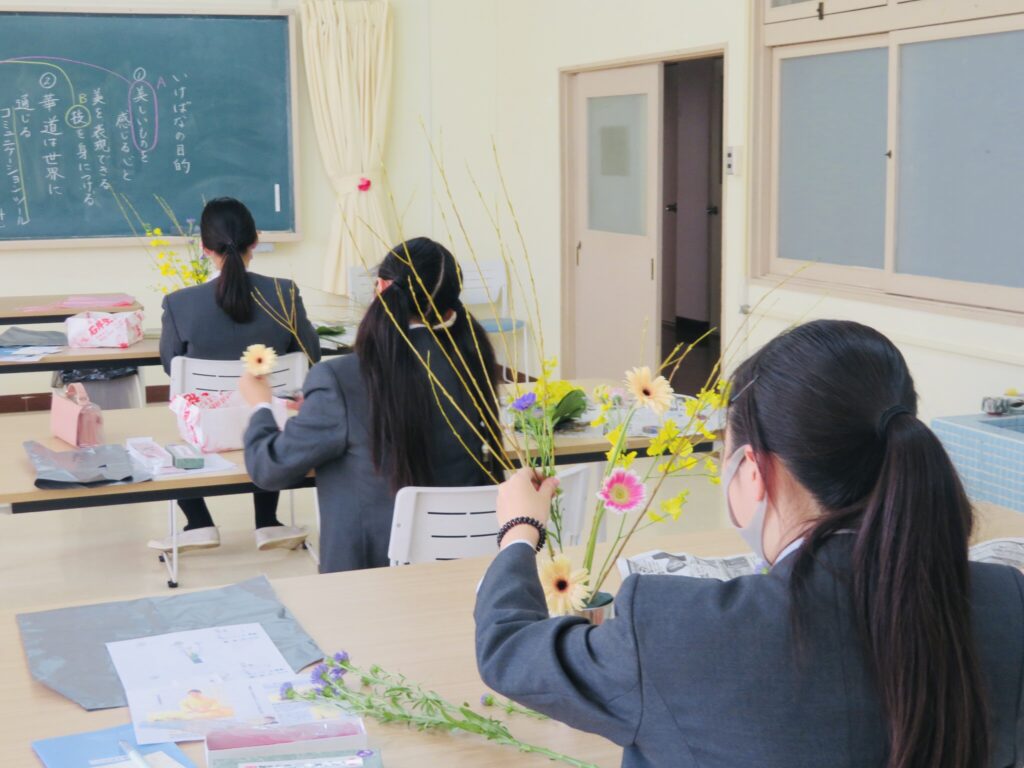 1年国際教養コース 文化理解 本日の華道のじかんは、さまざまな長さの花を使いました。柳、モンステラ、ガーベラのような季節の花を使い、美しくしあげました。 茶道は、お茶とお菓子をだして、客人をもてなす方法を学びます。お茶会では、覚えておかなければならないことがたくさんあります。生徒たちは、上手くできました。 2021.10.19 前の記事へ 一覧 次の記事へ