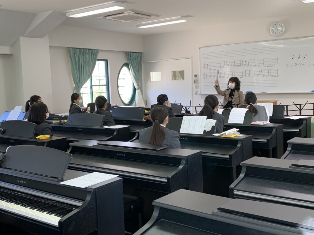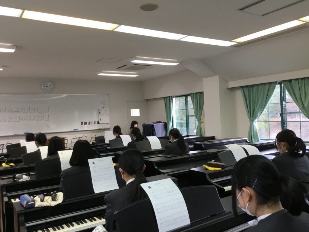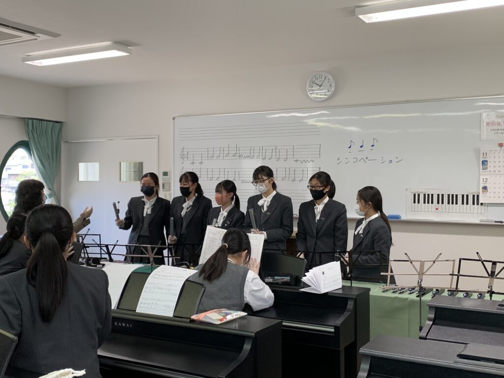2年こども教育進学コース「ガイアの時間」 2年生の「ガイアの時間(総合的な探究の時間)」は、久留米信愛短期大学 原 浩美先生をお招きして「音とリズムで遊ぶピアノ連弾」の授業をしていただきました。連弾をしたり、トーンチャイムをしたり、楽しく音楽に触れる時間を過ごしました。 先生と連弾 トーンチャイムの鳴らし方 トーンチャイムに挑戦 2021.12.06 前の記事へ 一覧 次の記事へ