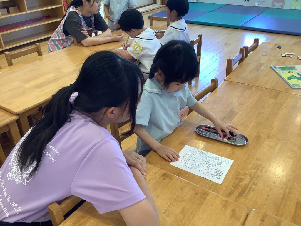 子ども達と折り紙や塗り絵などをして…たくさん遊びました。