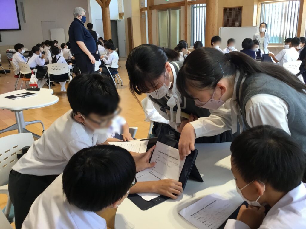 国際教養コースの2年生は、定期的に附属小学校の子供たちと英語を使った交流を行っています。今月は、小学生たちが「小学校と中学校との違い」について、英語で考え、発表をするお手伝いに行ってきました。英語の知識はもちろんですが、先輩として色々なことを教えられる貴重な機会となりました。