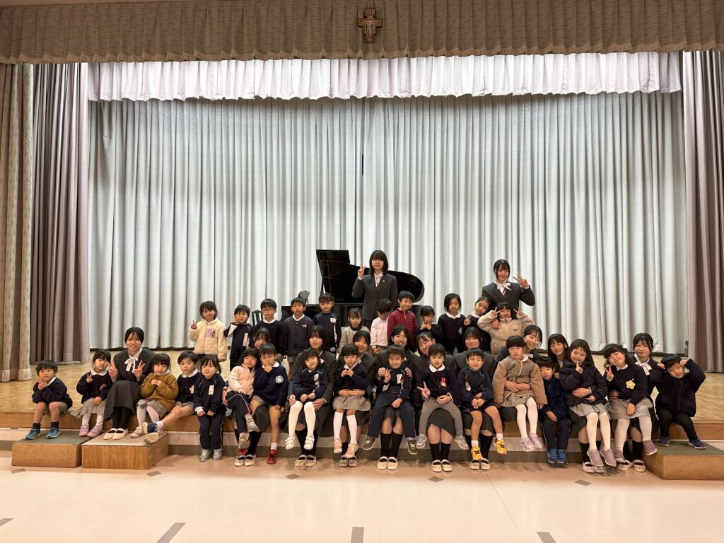 こども教育進学コースの3年生が、同じキャンパス内にある認定こども園マリア幼稚園の子ども達やこども教育進学コースの下級生、保護者の方をお招きして、「卒業ピアノ発表会」を行いました。