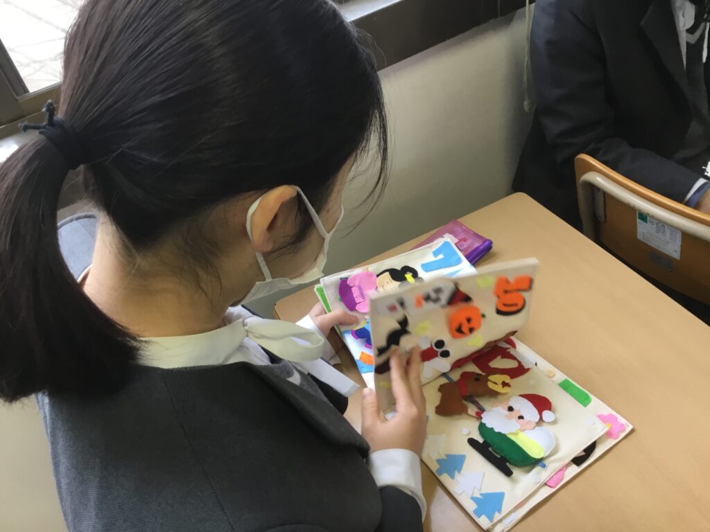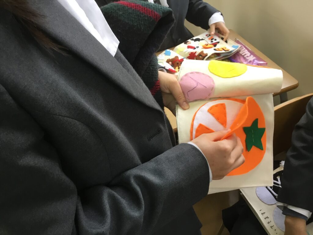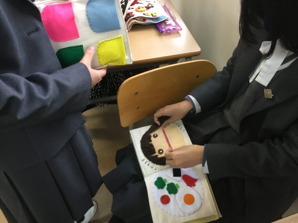 3年こども教育進学コース「布絵本」 こども教育進学コースの3年生は、卒業制作として1人1冊ずつ布絵本を作製します。 子どもが楽しめるようなオリジナルのストーリーを考え、子どもの指先や思考を育てることのできる仕掛けも工夫しながら作りました。 全員完成!どれも力作です。 完成した絵本を手にして、お互いに読み合いました。 2022.02.03 前の記事へ 一覧 次の記事へ