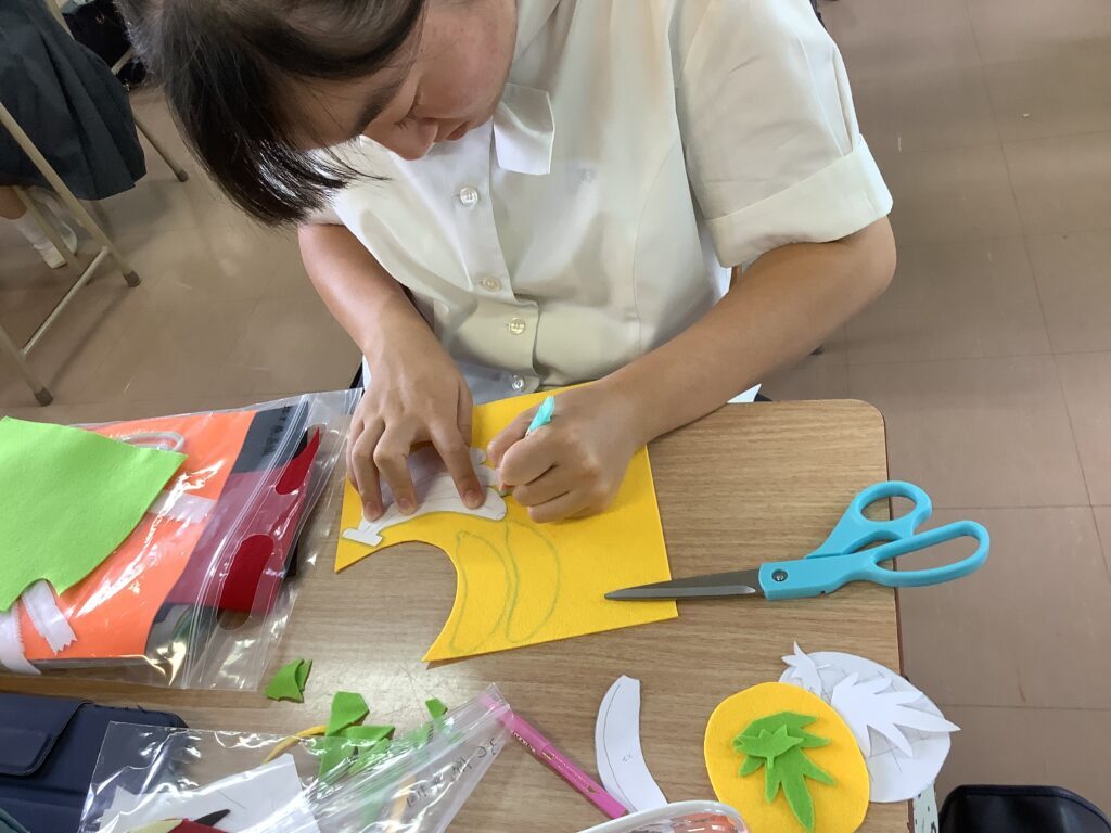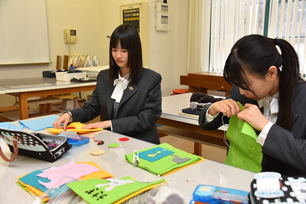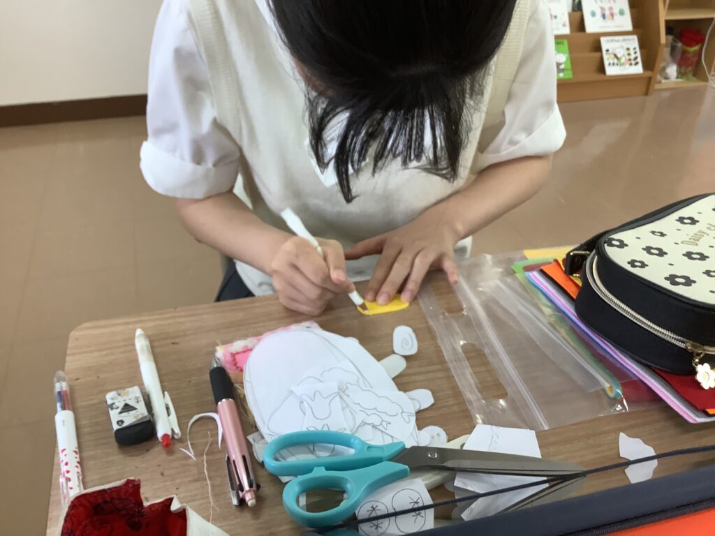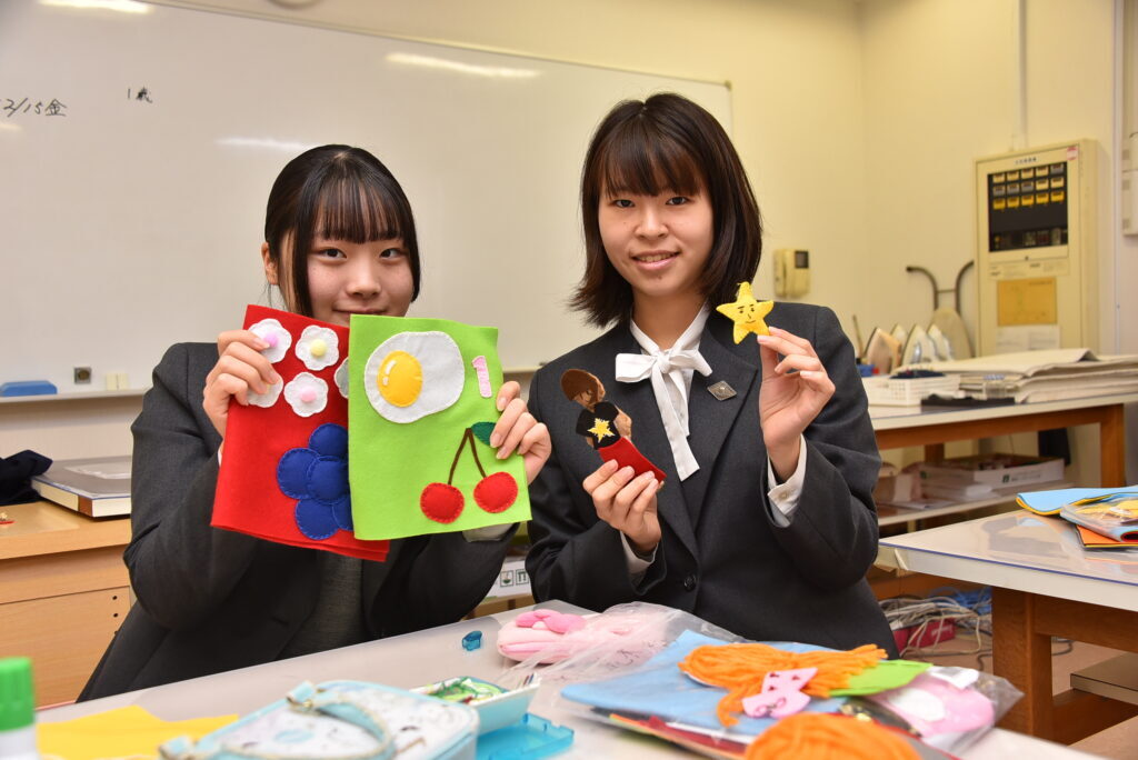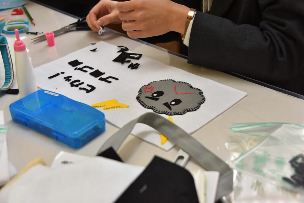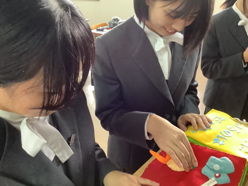 こども教育進学コースの3年生は、卒業制作として布絵本を1人1冊ずつ作ります。子どもが楽しめるようなストーリー、指先や思考等を育てることのできる仕掛けを考えます。