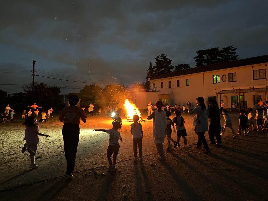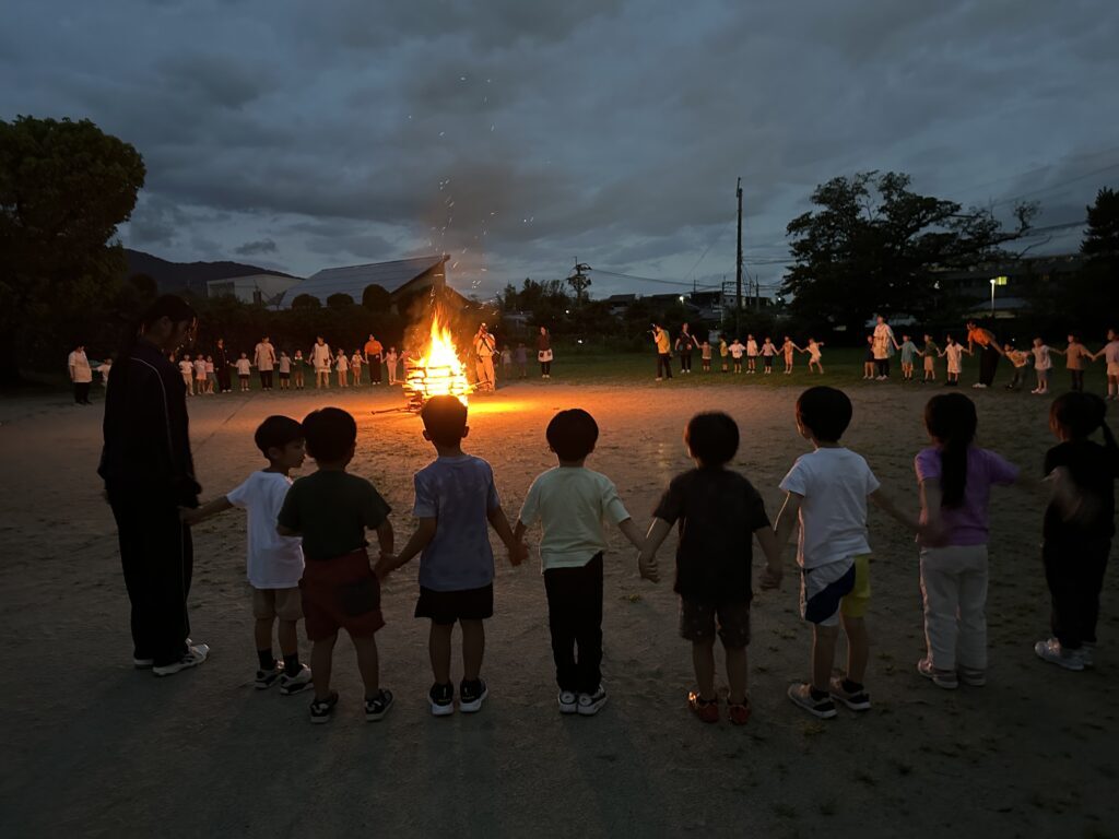 一つの火を囲んで、≪キャンプだホイ≫や≪勇気音頭≫を踊ります。