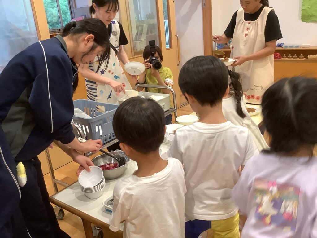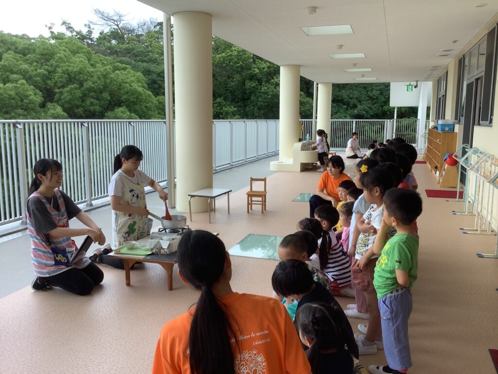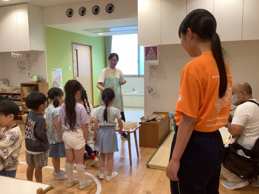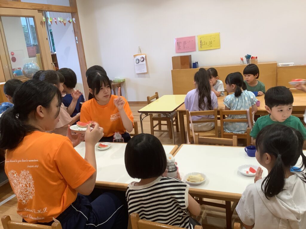 神様に感謝のお祈りをし、おたのしみ保育を終えました。こども教育進学コースの生徒達も子ども達と一緒に楽しみ、行事補助を通して、先生方の行事の運営方法、先生方の動き、子どもとの関わり方等、多くのものを学ぶことができました。夏休みには、未満児保育実習や外部保育園実習があります。さらに学びを深めていきます。