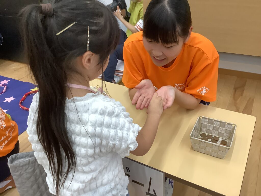 考えながらお金を使い、好きなものをお買い物します。ゲームも高校生と一緒に楽しみました。