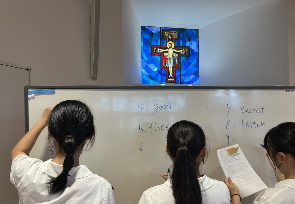 Students have the chance three times a week to prepare for the common English listening test for their university admission. This class is taught only in English by one of our native English teachers. Students learn different techniques to improve their English listening skills. One way students prepare for the test is through dictation. Together, students share their answers and go through each section with the teacher. Listening class is a lot of fun, and students have improved immensely since the beginning of the year! Keep up the good work, girls!