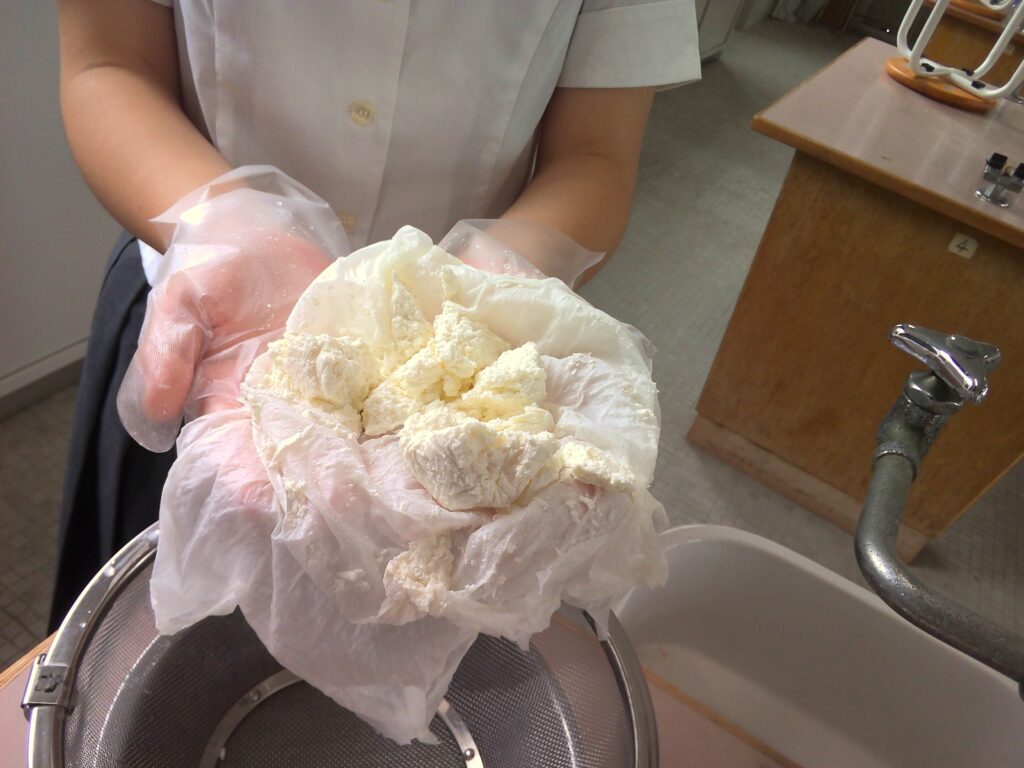 3年生 化学 タンパク質を取り出してみよう Jpeg 天然高分子化合物でタンパク質を学びましたので、身近な食品である牛乳からタンパク質を取り出してみました。白くて、とてもきれいなカッテージチーズができました。 2024.07.05 前の記事へ 一覧 次の記事へ