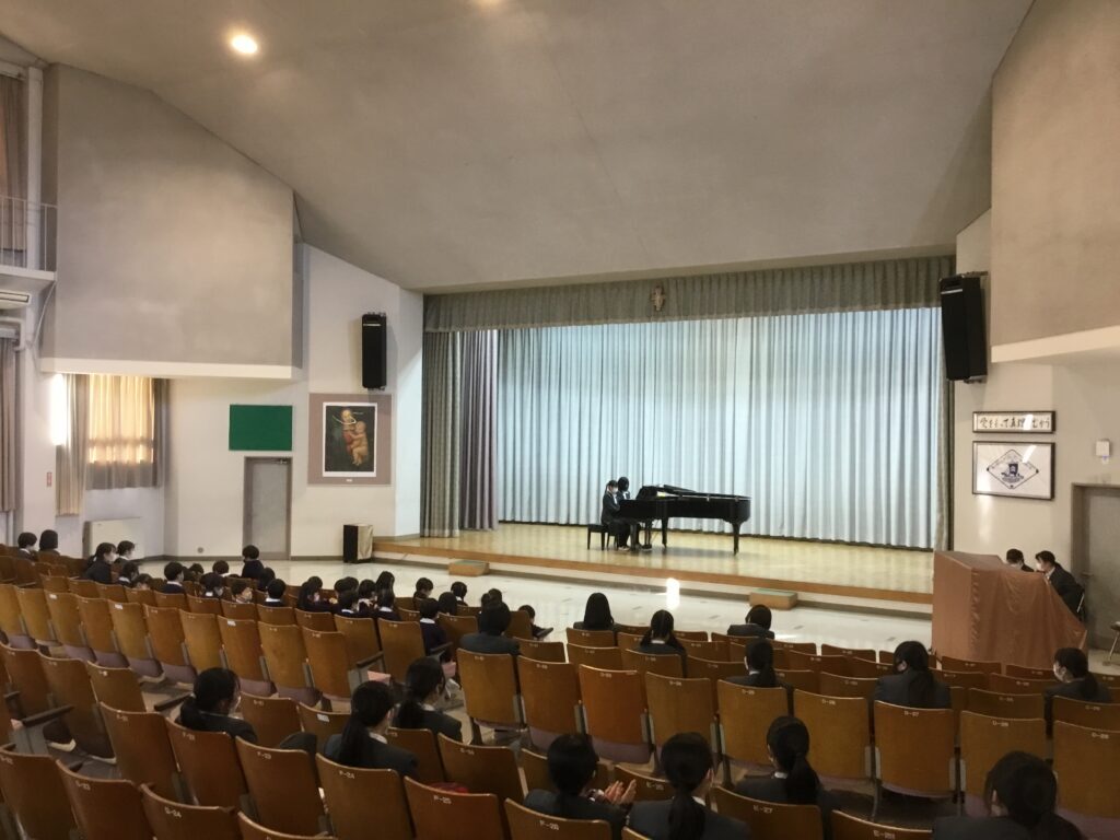 卒業を目の前にした3年生が、今までの練習の成果をこども教育進学コースの下級生やキャンパス内の認定こども園マリア幼稚園の園児を招き、「卒業ピアノ発表会」を行いました。