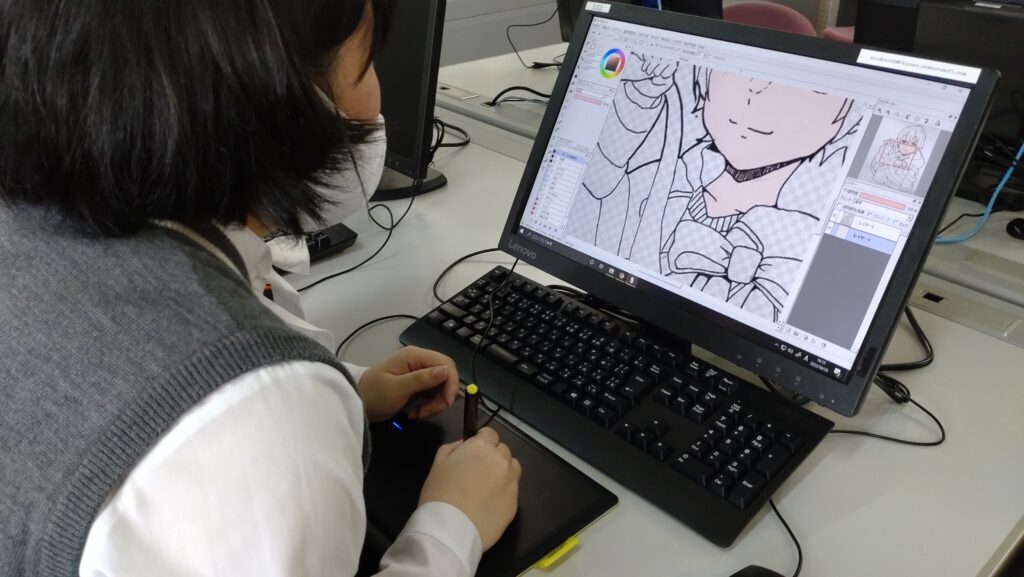 ユネスコアートボランティア部は、水・木・金曜日、4つの部門に分かれて楽しく活動しています。ボランティア部門は、ハギレを使った小物づくりや施設訪問、パソコン部門は、ソフトを使ってのイラスト制作とコンテスト応募、美術部門はデッサンや油絵制作と展覧会出品、合唱部門は、歌唱とピアノ伴奏や演奏会出演などを行います。