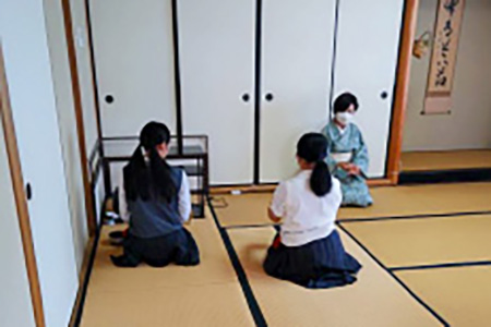 茶道部では、和の心を大切にしながら、基礎的な茶道の作法を身につけるべく、日々のお稽古に励んでいます。年に2回、大宰府で行われる学生茶会にも参加しています。日本の文化の深みを感じながら学んでいく茶道は、茶席以外の様々な場面においても役立つものです。