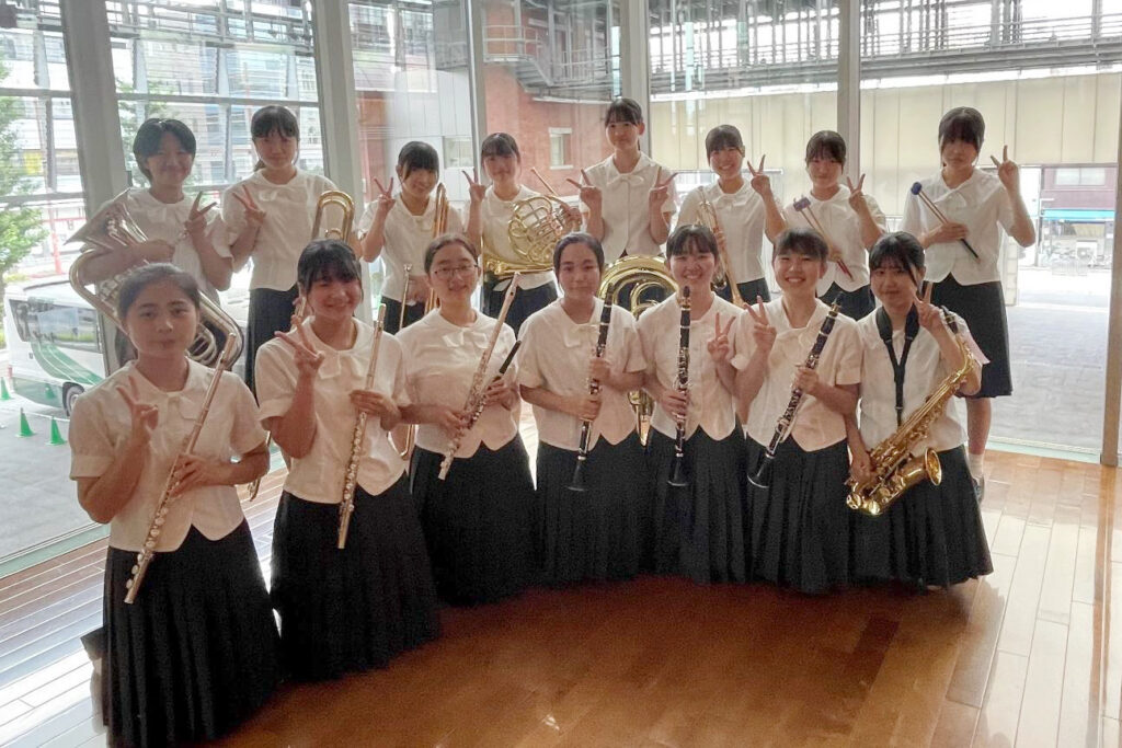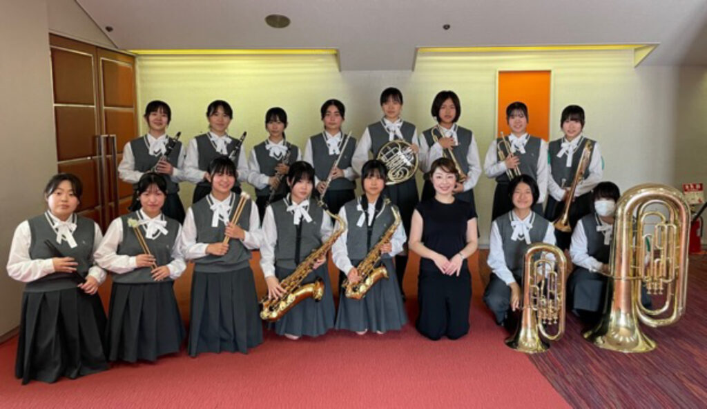 令和7年6月7日(土)には福岡サンパレス ホテル&ホールで行われた「第64回吹奏楽祭」に参加し、福田洋介氏作曲の「風之舞」を小野先生の指揮で演奏しました。現在、8月1日・2日の吹奏楽コンクールに向けて猛練習中です。