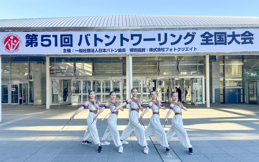バトン部は現在6名で活動しており、全国大会出場を目標に日々練習に励んでいます。バトンを知らない方にも魅力を感じていただけるよう、オープンキャンパスなどで演技を披露しています。ぜひ一度ご覧ください。