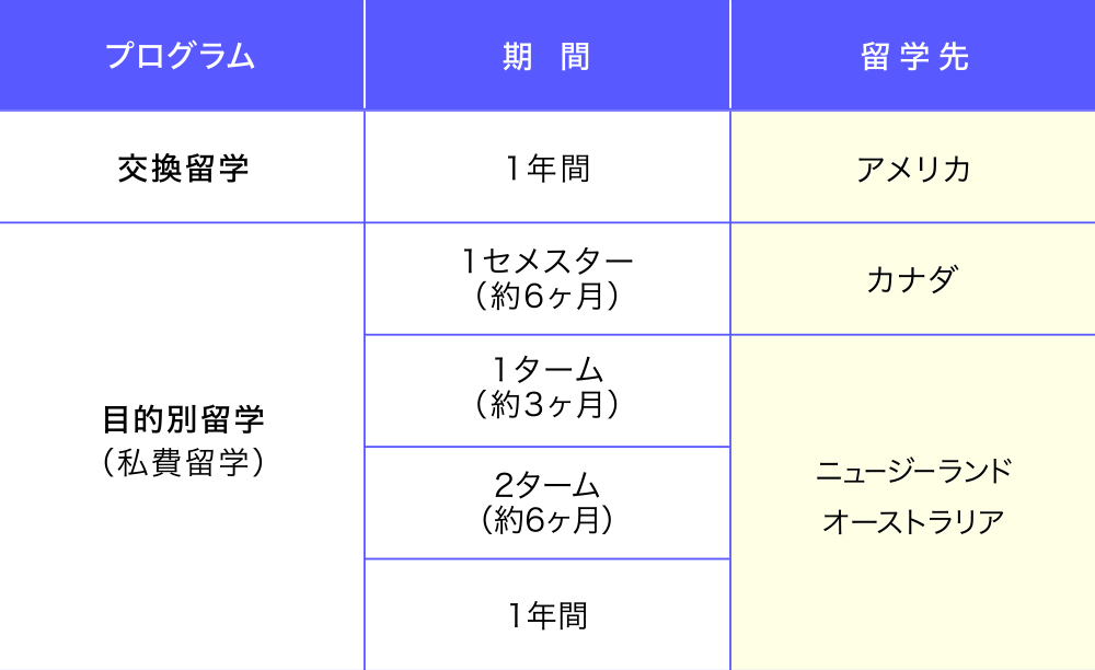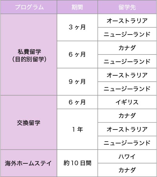 国際教養コースの生徒は、在学期間中に海外留学を経験することができます。留年することなく3年間で卒業できる制度です。留学費用など詳しい内容につきましては、体験入学会や説明会でご確認ください。