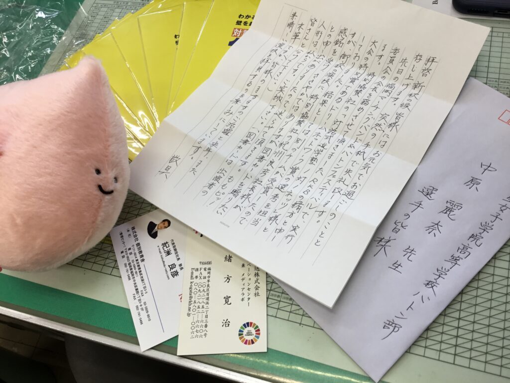 「自分たちの演技で、人の心を動かすことができる」そんな自信を、部員たちはこのお手紙からもらいました。来週の九州大会では、もっともっと良い演技で、もっともっと多くの方に感動を届けられたらと思っています。