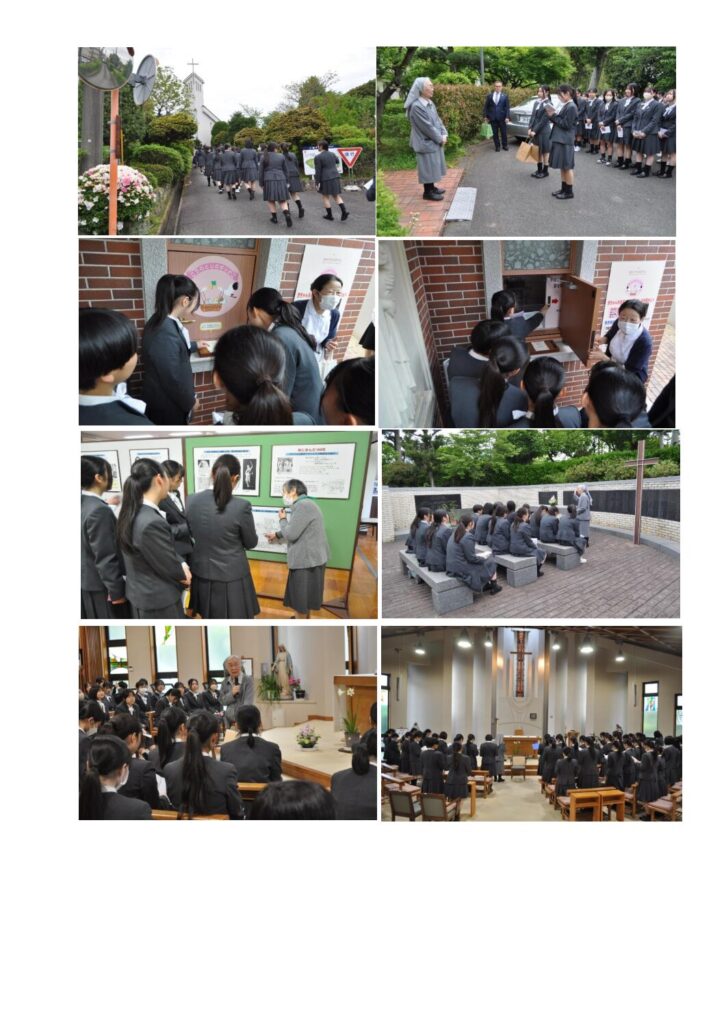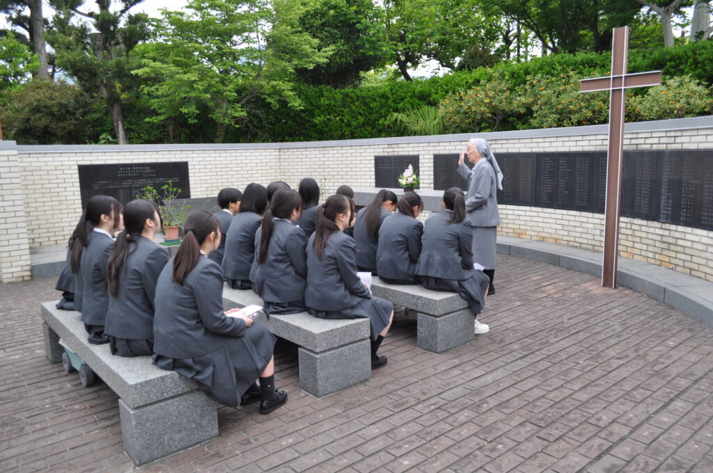 第3学年は4月26日(金)に研修で福岡海星女子学院のルーツを学ぶため、熊本を訪れました。全員でマリアの宣教者フランシスコ修道会の熊本修道院を訪れた後、学年を3つのグループに分け、「コール館(元待労院資料館)」、「医療法人聖粒会慈恵病院こうのとりのゆりかご」、「コール氏墓地・ルルド・Sr納骨堂」を、それぞれのグループが順番に訪問しました。