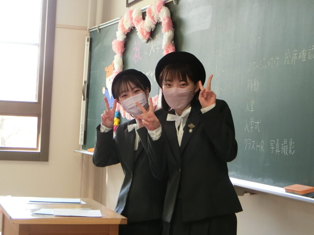 入学式前日の放課後、1年生の教室を綺麗に飾り付け、入学式で配付するプリントや全校生徒で心を込めて作ったコサージュをひとりひとり準備しました。