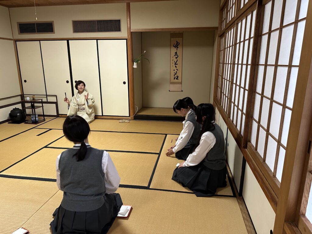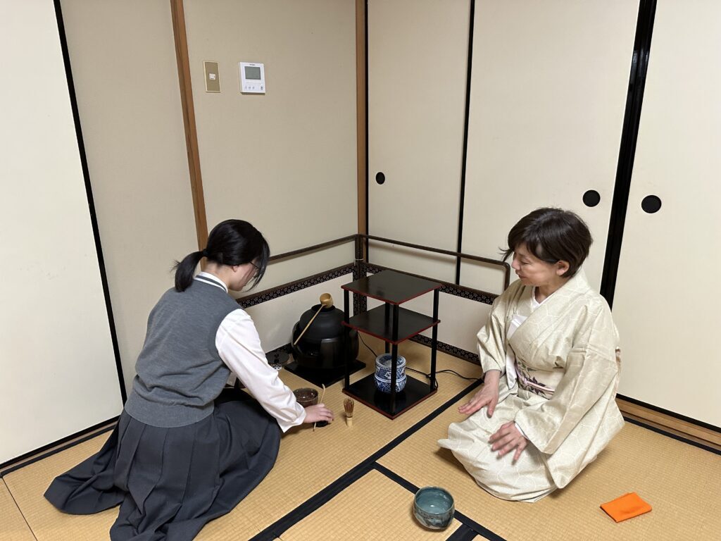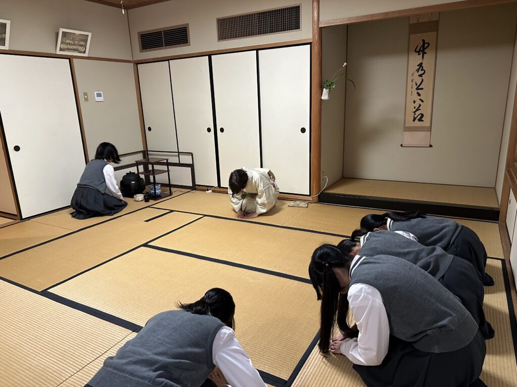 厳かな雰囲気の中、他校の生徒や学生と一緒にお茶会を経験することができ、茶道の楽しさや奥深さを経験することのできた1日となりました。