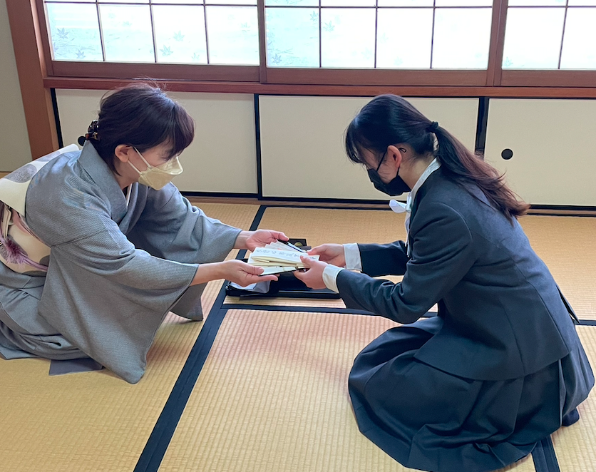 卒業を間近に控えた3年生が、 「入門」 と 「習事」 のお免状を受けました。