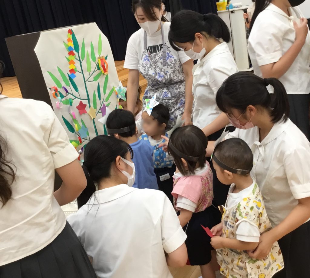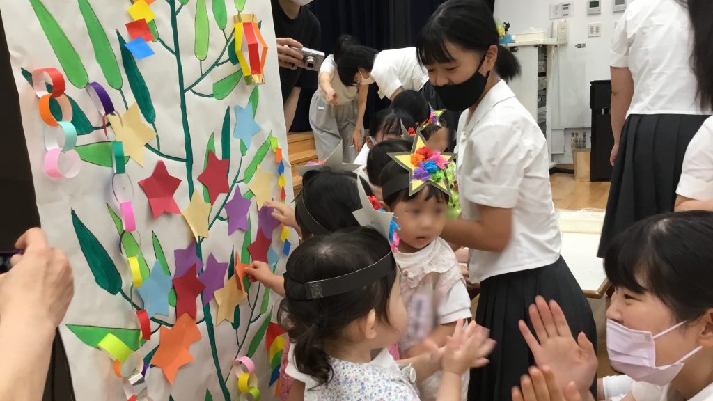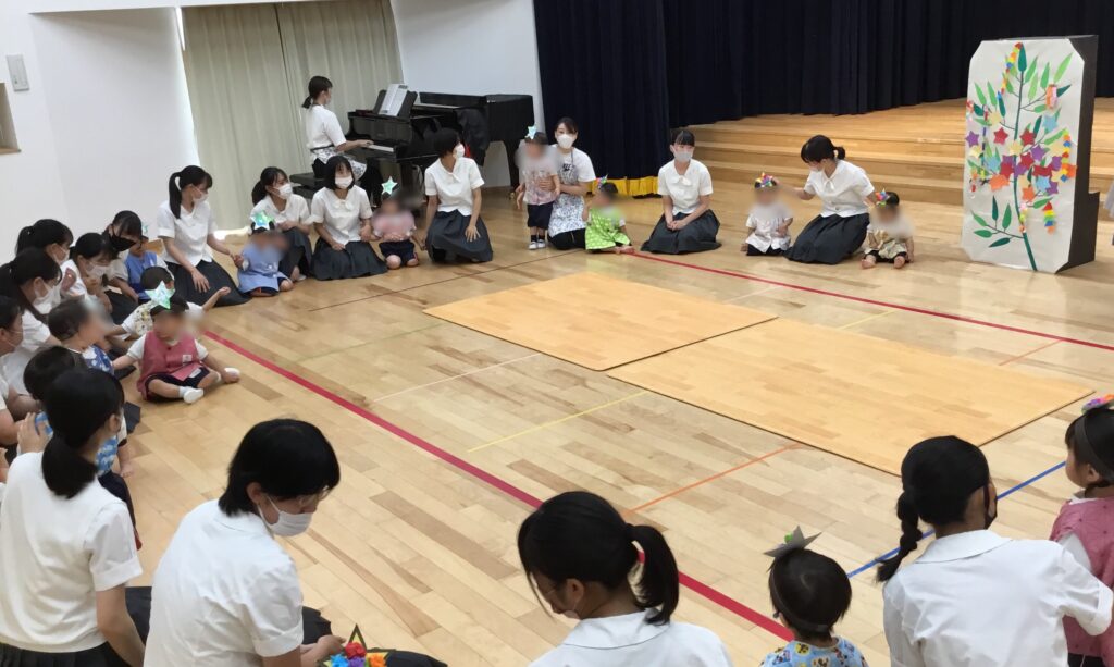 こども教育進学コースの3年生が附属園に行きました。未満児さんの七夕会に参加させていただきました。